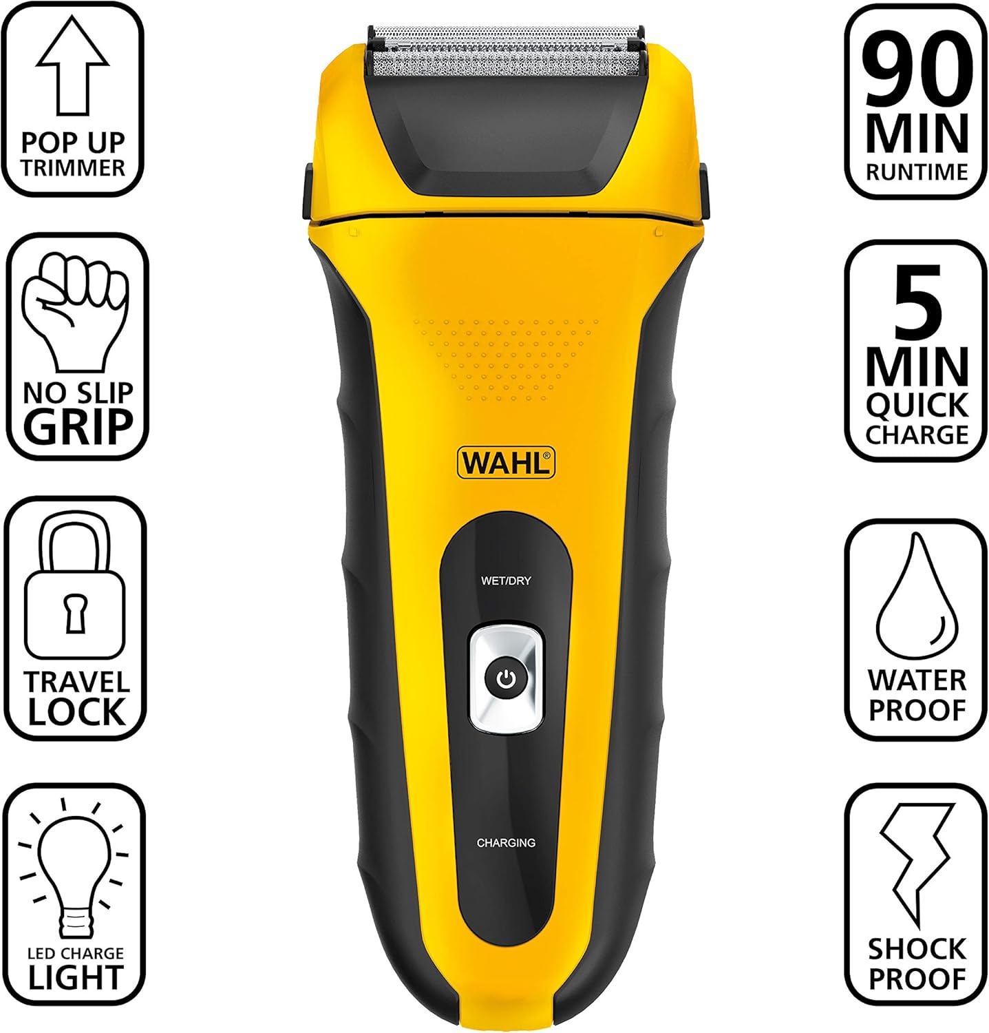Para facilitar a manutenção, há a função de abertura com um toque (“one-touch open”), permitindo enxaguar a cabeça com água de forma rápida e prática. Esse modelo é à prova d’água (“wet & dry”), o que significa que você pode barbear a seco ou usar com espuma, gel ou até no chuveiro, conforme sua preferência.